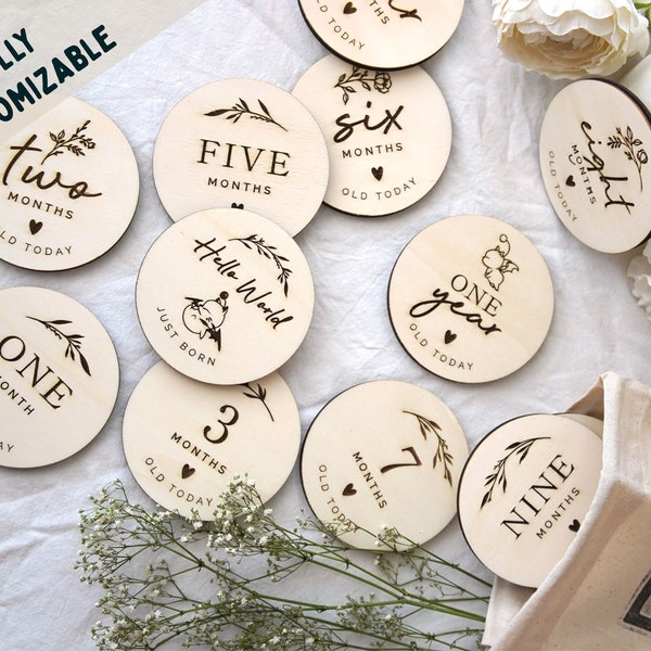 Halte jeden besonderen Moment deines Babys fest! Diese 16 wunderschönen Meilensteinkarten aus massivem Holz begleiten euch durch das erste Jahr. Jede Karte ist doppelseitig mit süßen Motiven bedruckt - für Jungs und Mädchen gleichermaßen geeignet.