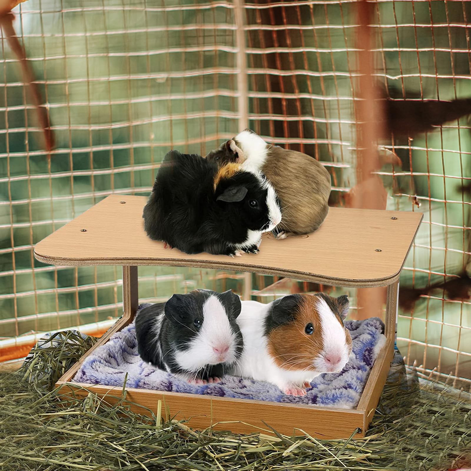 Meerschweinchen Haus Aus Holz - 2-stöckig Mit Rampe & Kissen 35x38x25 Cm