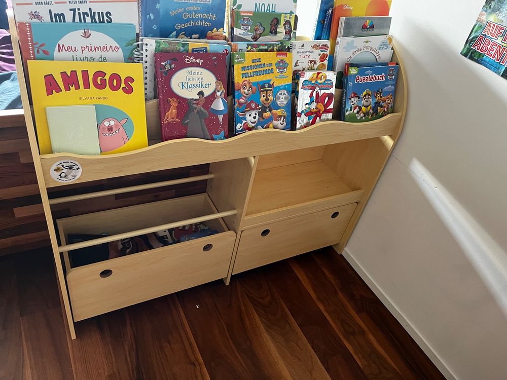 Ordnung im Kinderzimmer! Dieses niedliche Bücherregal von Suuiwau im schrägen Design macht Bücher für Kinder perfekt sichtbar. Aus stabilem Holz, Maße: 80x30x88cm mit 4 Einlegeböden - bietet jede Menge Platz für Bilderbücher, Geschichten und mehr. Die abgerundeten Ecken und die kippsichere Form sorgen für Sicherheit. Dein Kind kann selbstständig Bücher herausholen und wieder einräumen - fördert die Selbstständigkeit und die Lesefreude. Passt perfekt ins Kinderzimmer, Wohnzimmer oder in den Kindergarten. In Naturholz-Optik - ein echter Hingucker!