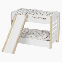 Suchst du ein besonderes Möbelstück für die Puppenwohnung? Dieses wunderschöne Etagenbett aus Holz ist ein Traum für jede Puppenmama! Mit hübschem rosa-weißen Herz-Design an den Seiten und Kopfteilen - einfach niedlich verarbeitet.