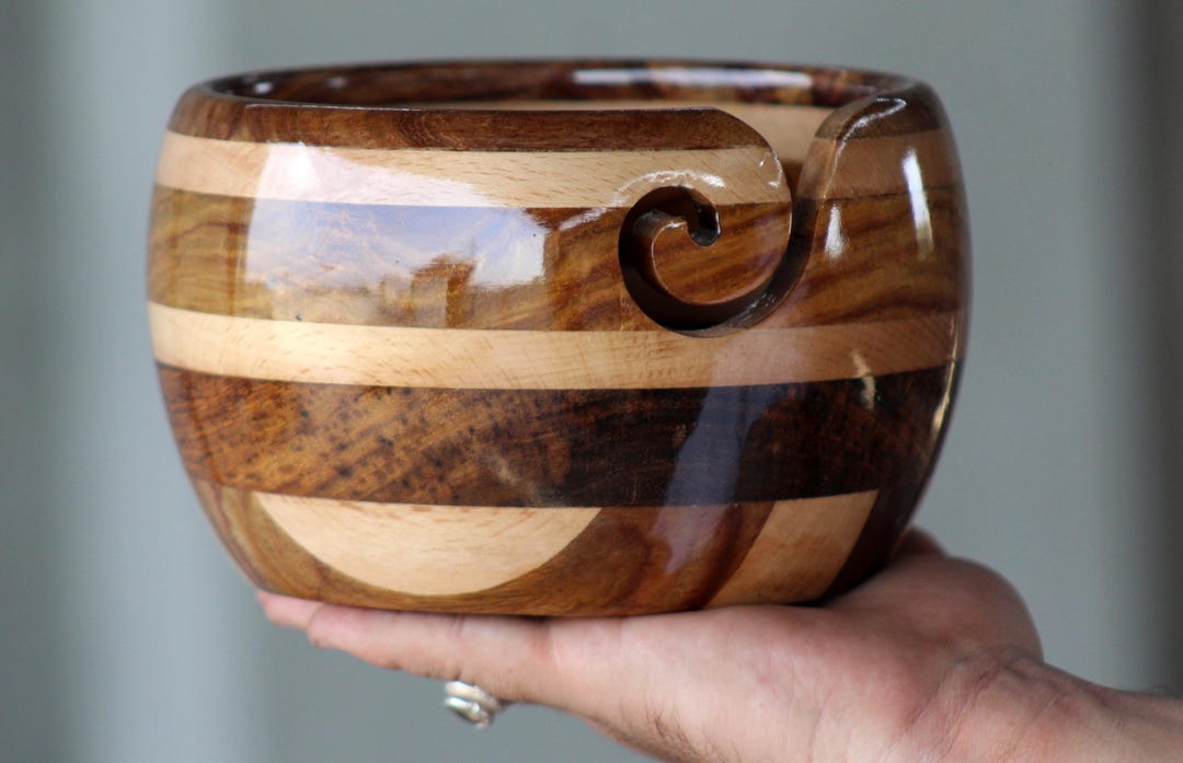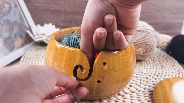 JasCherry Holz Garnschale - Handgemachte Wollschale Mit Deckel