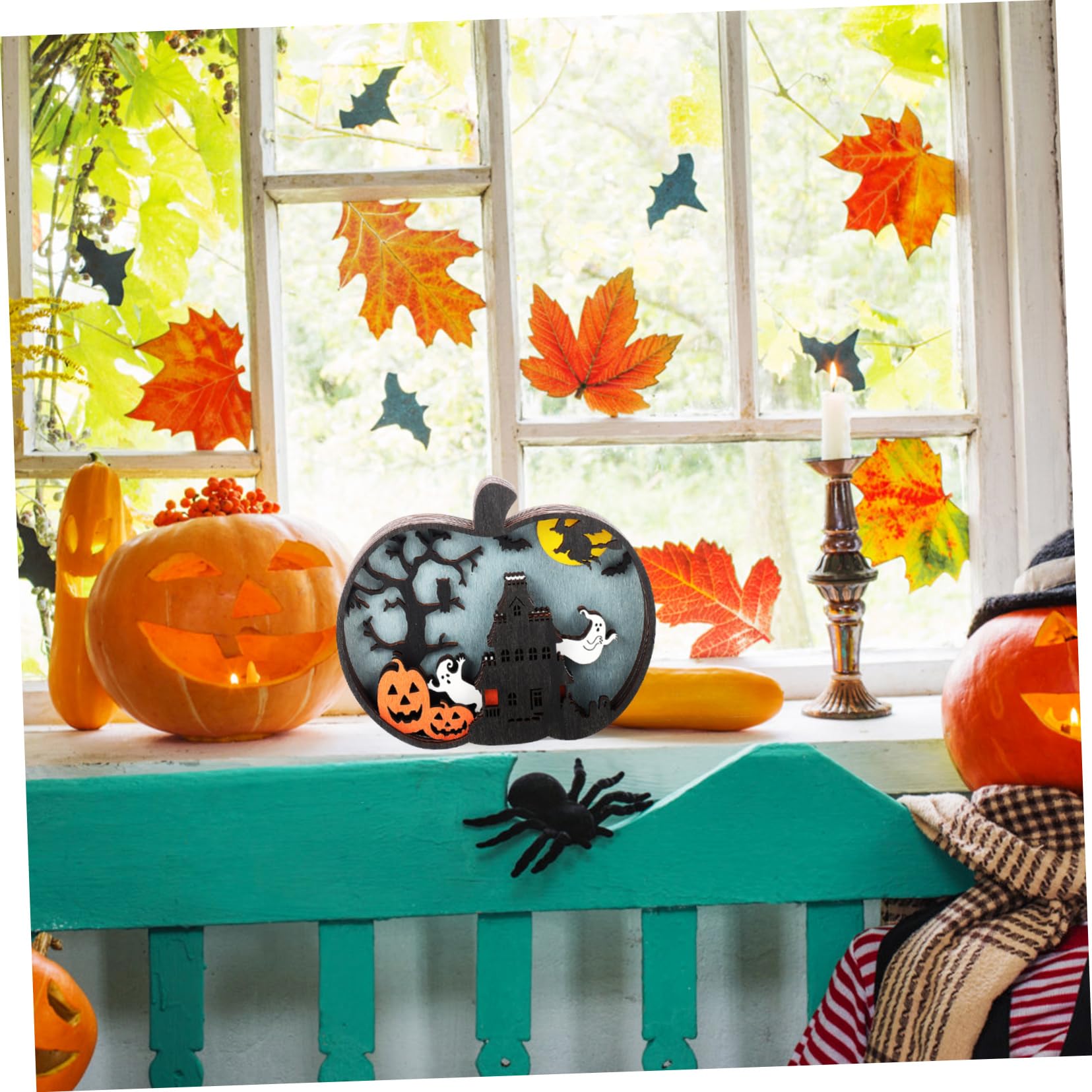 Halloween Deko Licht Aus Holz - Kürbis Laterne Mit Schwarzer Katze & Fledermäusen