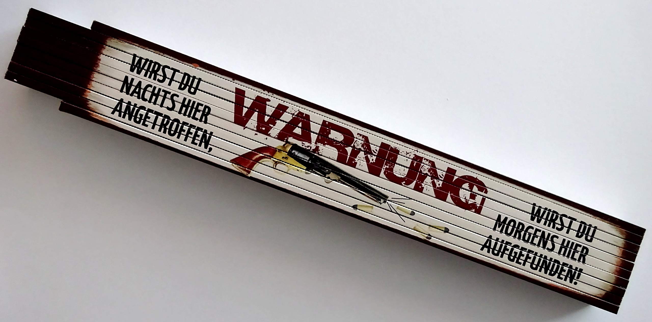 Ein Zollstock mit Charakter! Dieser 2m lange Meterstab aus Holz ist nicht nur ein praktisches Messwerkzeug, sondern auch ein echter Hingucker mit seinen einseitigen Aufdrucken. Hergestellt in Deutschland in Premium-Qualität, überzeugt er durch seine Langlebigkeit und präzise Einteilung. Perfekt für Handwerker, Heimwerker, Künstler oder einfach als cooles Accessoire für die Werkstatt. Die markanten Sprüche machen ihn zu einem besonderen Geschenk für alle, die Werkzeug zu schätzen wissen. Ob auf der Baustelle, im Hobbykeller oder als Dekoration - dieser Zollstock fällt auf! Mit seiner klassischen Holzbauweise liegt er gut in der Hand und ist angenehm zu benutzen. Ein traditionelles Werkzeug mit modernem Twist - praktisch, robust und mit einer Portion Humor. Für alle, die bei der Arbeit auch auf Stil Wert legen. Einfach ausklappen, messen und sich über Qualität made in Germany freuen!