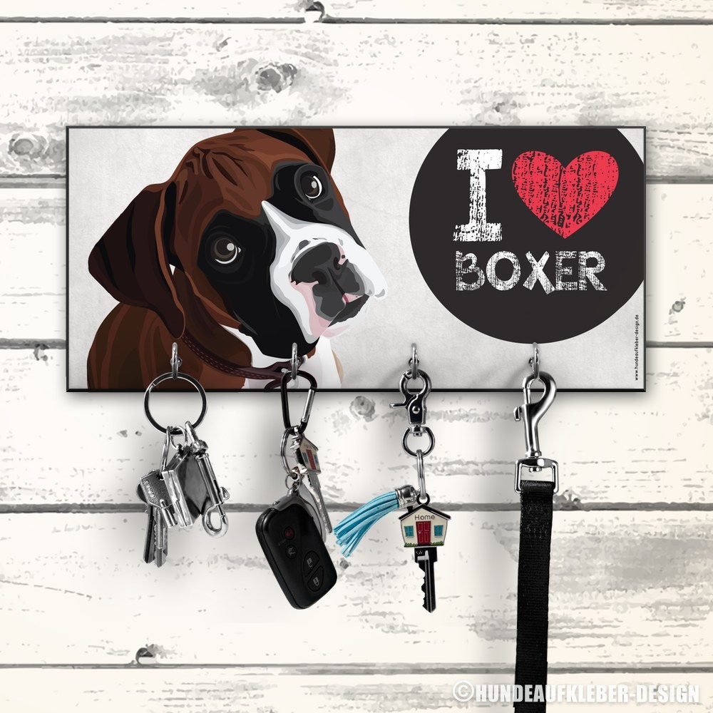 Hunde Garderobe Holz Mit 4 Haken - Schlüsselbrett Leinenhalter Braun