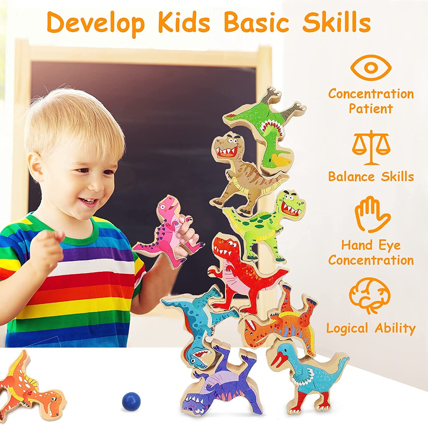 Dinosaurier Stapelspielzeug Aus Holz - Montessori Spielzeug Ab 3 Jahre, Balance Spiel