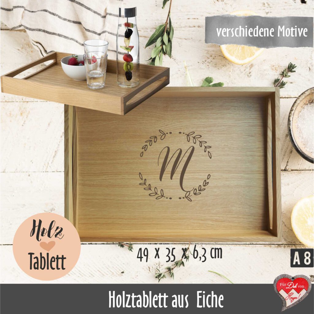 Dieses massive Holztablett ist ein echter Allrounder für zu Hause! Mit 40x30cm bietet es genug Platz für ein komplettes Frühstück, Snacks oder Getränke. Die praktischen Griffe machen das Tragen super einfach - kein Wackeln, kein Verschütten.\\n\\nGefertigt ist das Tablett aus Bucheholz für die Seiten und Sperrholz für den Boden, alles naturlackiert für eine schöne Optik und einfache Reinigung. Einfach mit einem feuchten Tuch abwischen und schon ist es wieder sauber.\\n\\nPerfekt nicht nur fürs Frühstück im Bett, sondern auch für:\\n• Partys und Empfänge\\n• Gartenfesten\\n• Roomservice im Hotel\\n• Catering-Events\\n• Oder einfach als stylische Ablage in der Küche\\n\\nDas Tablett ist robust genug für den täglichen Einsatz, sieht aber trotzdem so schick aus, dass du es auch bei besonderen Anlässen verwenden kannst. Die lackierte Oberfläche schützt vor Feuchtigkeit und ist lebensmittelecht - also absolut unbedenklich für Speisen und Getränke.\\n\\nEin echter Klassiker, der in keiner Küche fehlen sollte!
