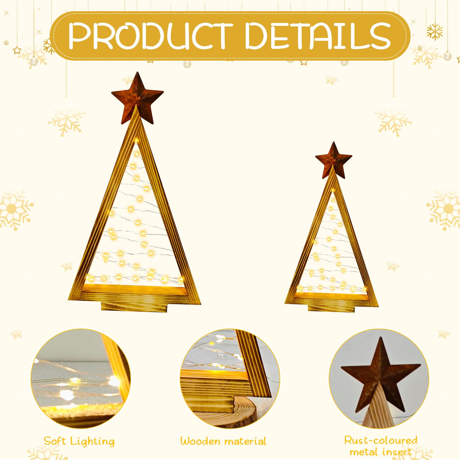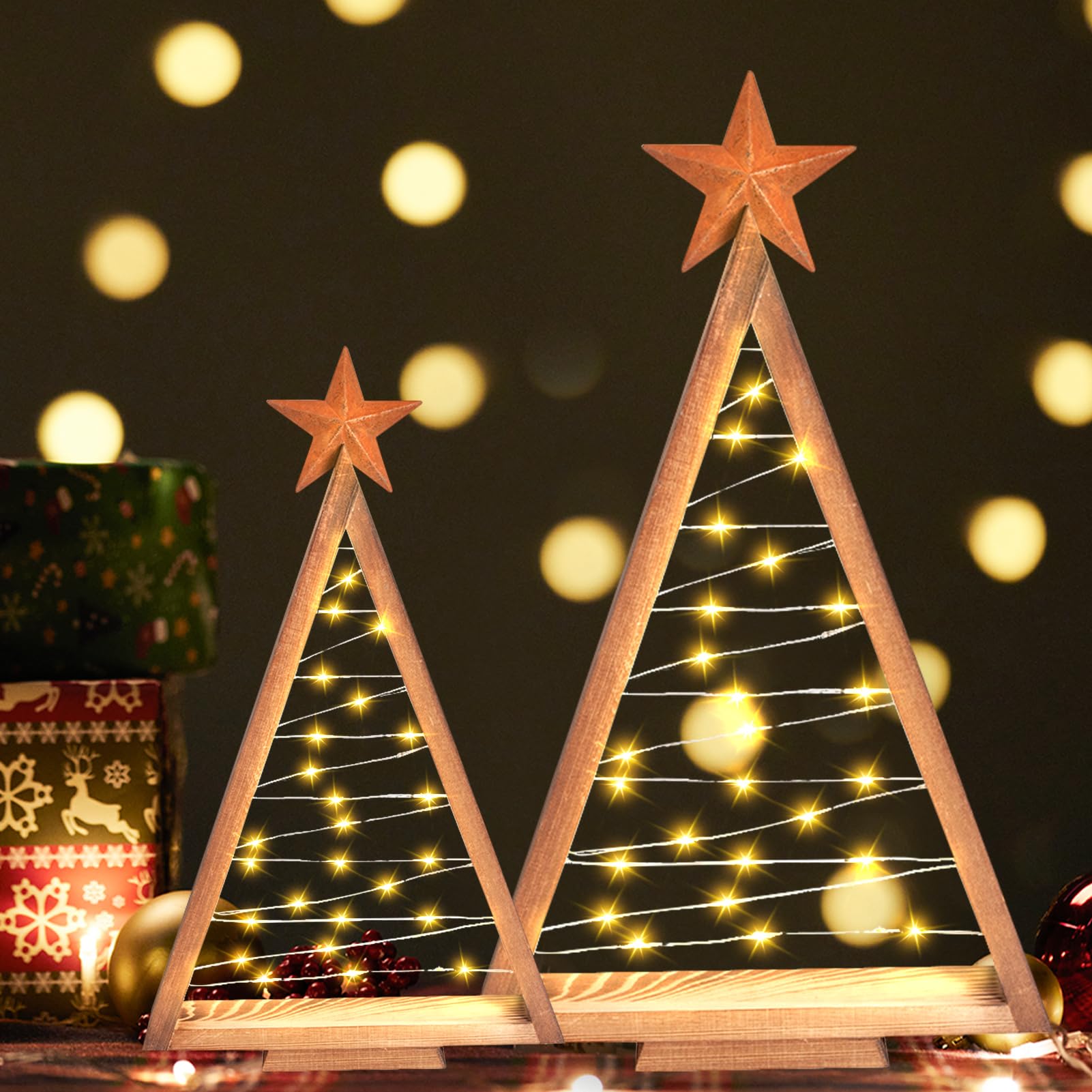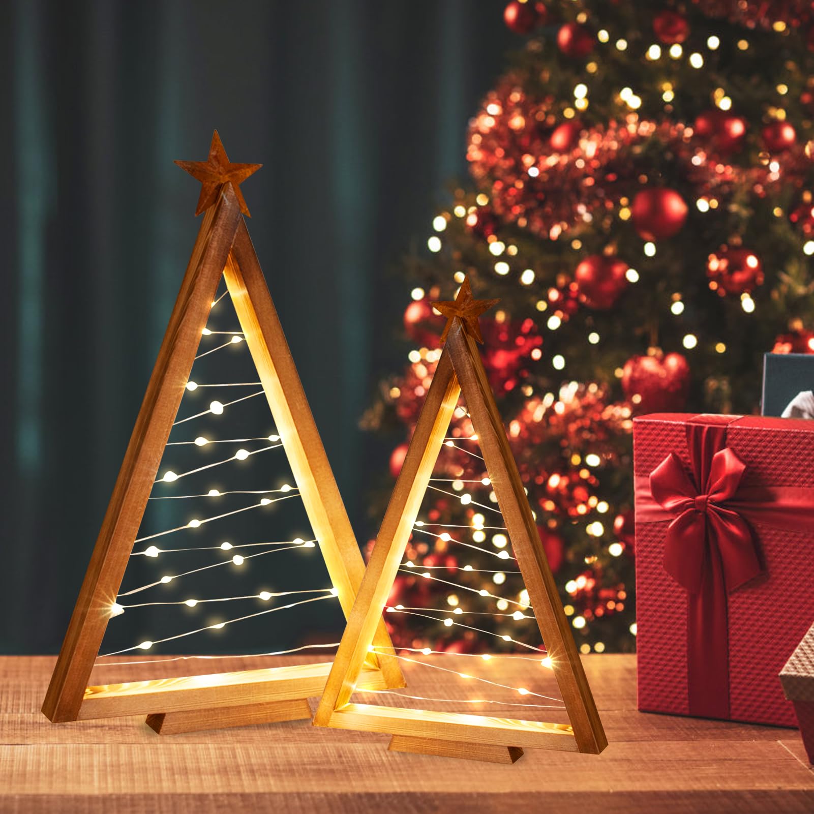 Weihnachtsdeko Beleuchtet - 2 Holz Weihnachtsbäume Mit LED Lichterkette & Timer