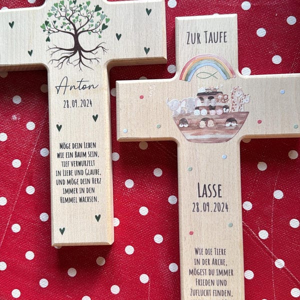 Dieses wunderschöne Holzkreuz mit dem Arche Noah Motiv ist einfach etwas Besonderes! Hergestellt aus hochwertigem Buchenholz und mit einem farbenfrohen Druck verziert, bringt es eine besondere Atmosphäre in dein Zuhause. Mit den Maßen 9x15 cm ist es genau die richtige Größe für viele Plätze - ob im Wohnzimmer, Schlafzimmer oder als besonderes Geschenk zur Taufe oder Kommunion. Das Motiv der Arche Noah erinnert an Hoffnung und Neubeginn, was dieses Kreuz zu einem ganz besonderen Stück macht. Perfekt für alle, die ihren Glauben sichtbar machen möchten oder einfach ein schönes Dekorationsstück suchen. Das Holz fühlt sich angenehm an und die Farben sind kräftig und klar. Einfach aufhängen und sich jeden Tag daran erfreuen! Ob als Geschenk für liebe Freunde oder für sich selbst - dieses Holzkreuz ist immer eine gute Wahl und sorgt für strahlende Augen.