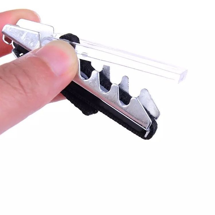 Einhand-Bedienung - einfach einklicken und spielen. Inklusive 5 hochwertigen Plektren (0,75mm) in verschiedenen Farben.