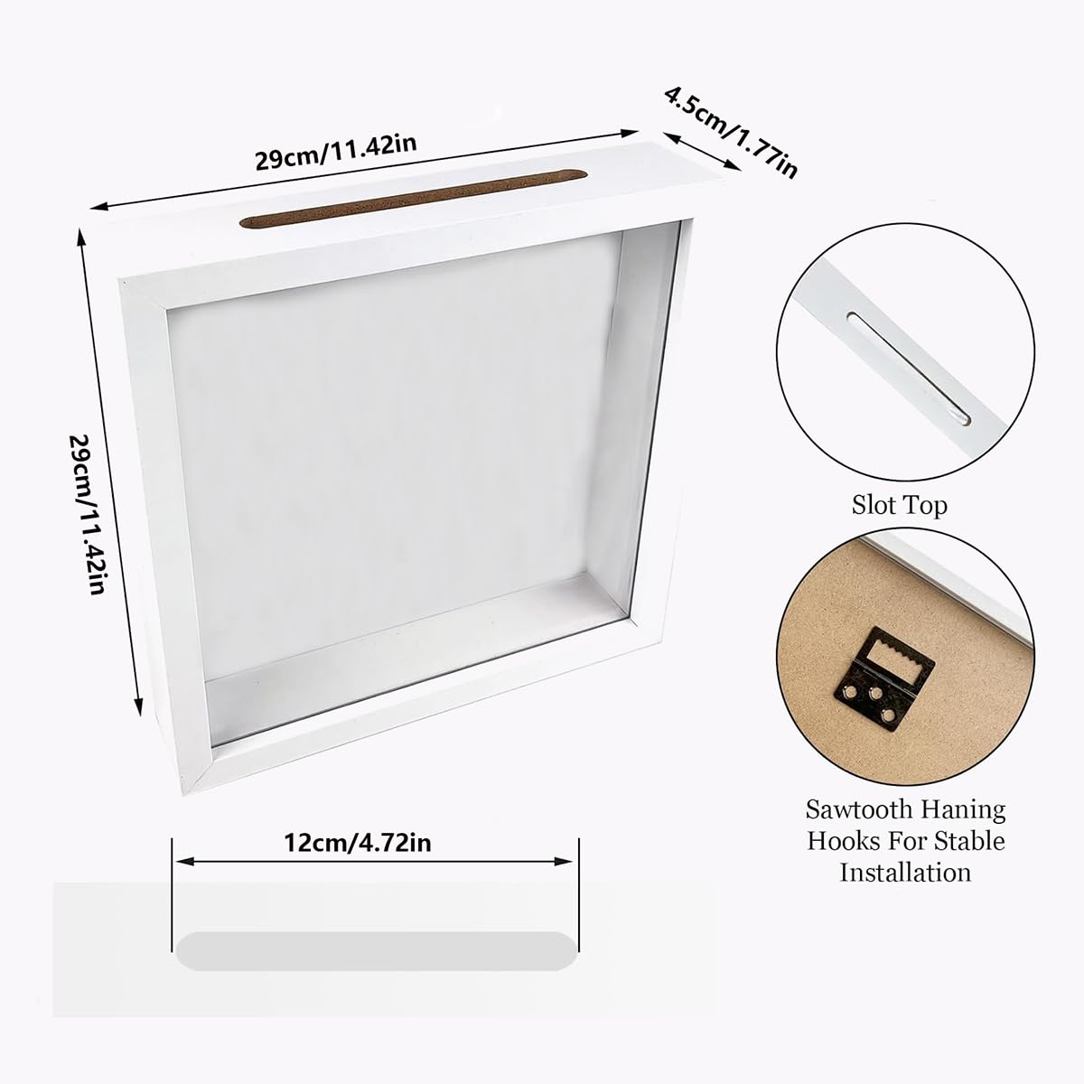 Mit 30x30x5 cm hat sie die ideale Größe für alle deine Schätze. Der Schlitz oben ist 11,7x1,1 cm groß - perfekt für Eintrittskarten, Flugtickets, Münzen, Korken oder Muscheln.