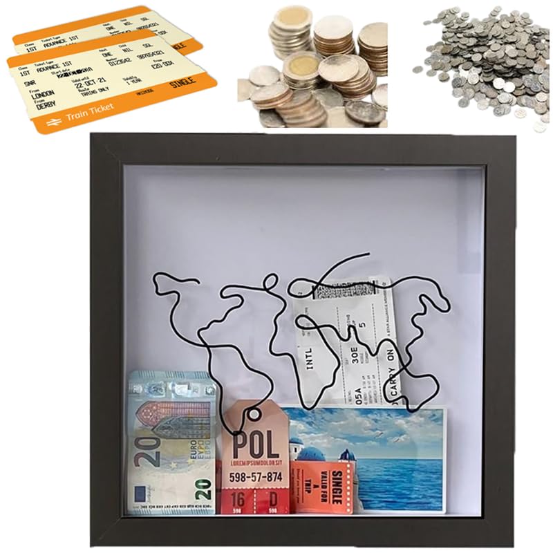 Reise Erinnerungsbox 29x29cm - Holzrahmen Für Tickets & Fotos