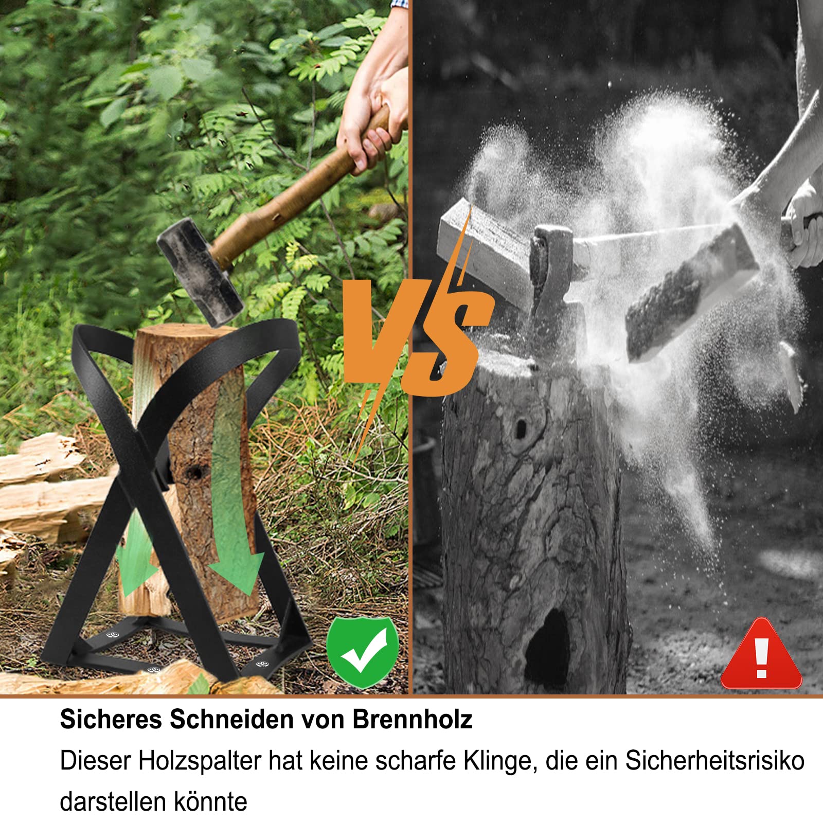 Holz spalten war noch nie so einfach und sicher! Dieser wandmontierte Holzspalter ersetzt lästiges Axt-Schwingen und macht aus dir einen Profi im Brennholz-Machen.\\n\\nTechnische Daten:\\n• Material: Hochwertiger Kohlenstoffstahl\\n• Maße: 60 x 14 x 8 cm\\n• Gewicht: ca. 4500 Gramm\\n• Inklusive: 4 Schrauben + 2 Handschuhe\\n• Wandmontage möglich\\n\\nSo einfach funktioniert's:\\n1. Spalter an Wand oder Baum befestigen\\n2. Holzstück einlegen\\n3. Hebel nach unten ziehen\\n4. Perfekt gespaltenes Brennholz!\\n\\nVorteile gegenüber herkömmlichen Methoden:\\n• Keine Axt oder Hammer nötig\\n• Viel sicherer als freihändiges Spalten\\n• Gleichmäßige Holzstücke\\n• Kein Strom erforderlich\\n• Umweltfreundlich\\n\\nPerfekt für:\\n• Kamin und Kachelofen\\n• Pizzaöfen im Garten\\n• Sauna und Grill\\n• Camping und Outdoor\\n• Lagerfeuer und Picknick\\n\\nDer Spalter ist aus robustem Kohlenstoffstahl gefertigt, der sich nicht verformt und rostbeständig ist. Selbst bei hohem Druck bricht oder verbiegt er nicht.\\n\\nTragbar und vielseitig einsetzbar - ob im heimischen Garten, auf dem Campingplatz oder in der Hütte. Ein praktisches Geschenk für jeden Hausbesitzer oder Outdoor-Enthusiasten.\\n\\nHinweis: Aufgrund manueller Messung können Maße leicht abweichen. Farbunterschiede durch verschiedene Lichtverhältnisse möglich.