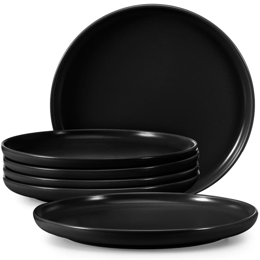 Suchst du stilvolle Teller für Kuchen, Desserts oder kleine Snacks? Dieses 6er Set von Home4You ist genau das Richtige! Aus robustem Steingut in mattem Schwarz sehen sie richtig edel aus. Mit 21cm Durchmesser sind sie perfekt für Stückchen Kuchen, Gebäck, Obst oder Vorspeisen. Das Beste: Sie sind mikrowellengeeignet und spülmaschinenfest - also super praktisch für den täglichen Gebrauch. Ob für die Kaffeetafel mit Gästen, das Frühstück oder einfach nur für dich selbst - diese Teller machen was her! Das schlichte Design passt zu jedem Tisch und jeder Einrichtung. Perfekt auch fürs Café oder die Gastronomie. Einfach mal ausprobieren - du wirst überrascht sein, wie vielseitig du sie einsetzen kannst!