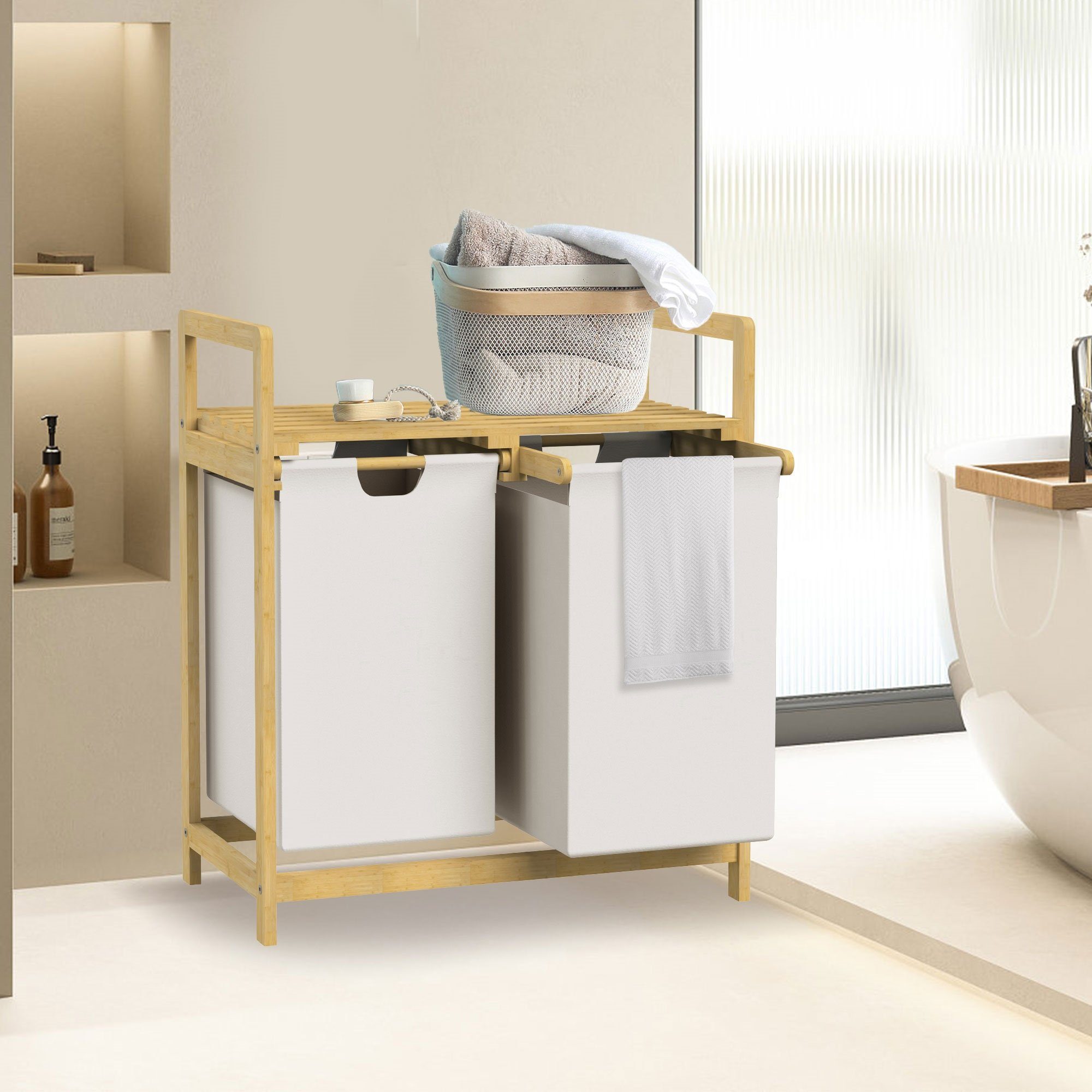 Home4You Wäschesammler Set 2-teilig - Edelstahl Weiß 37L & 54L