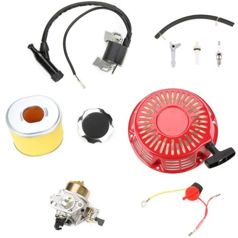 Komplettes Tune-Up-Set für deinen Motor! Passt perfekt für Honda GX340, GX390, Predator und ähnliche 11-13 PS Motoren mit 338-420cc. Enthält alles was du brauchst: Vergaser mit Dichtungen, Zugstarter, Zündspule, Luftfilter, Zündkerze (Typ F6TC), Kraftstoffleitung und sogar Drosselfedern. Ideal für Hochdruckreiniger, Wasserpumpen, Mini-Bikes, Go-Karts und andere Geräte. Einfach den alten Vergaser und Zubehör austauschen und schon läuft dein Motor wieder wie neu. Achtung: Nicht für Generatoren geeignet! Aftermarket-Teile in guter Qualität - perfekt um deine Maschinen kostengünstig instand zu setzen. Alles in einem Set - kein Suchen nach Einzelteilen mehr!