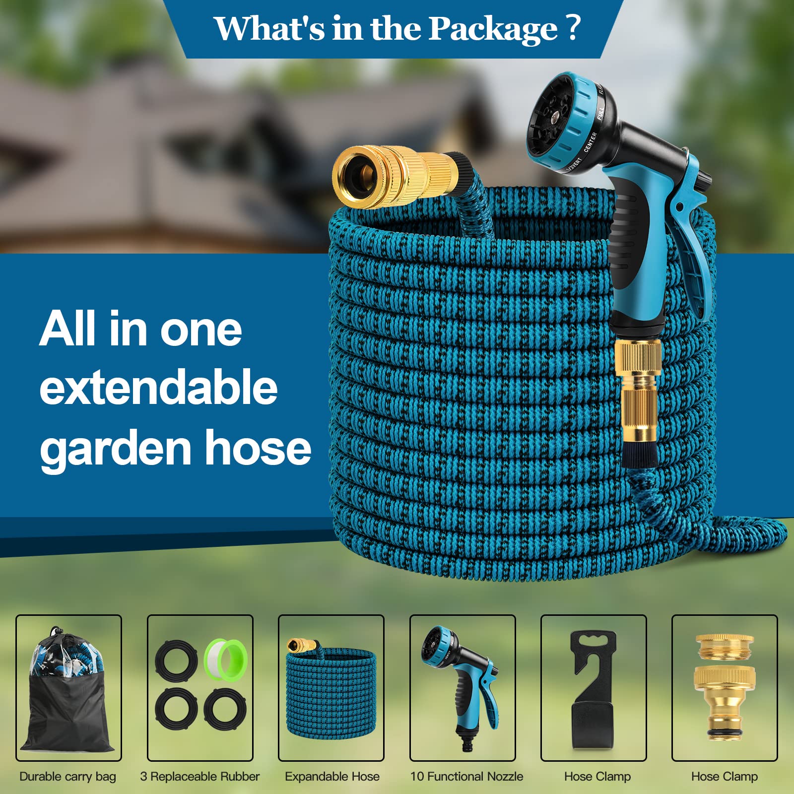 Honseadek Flexibler Gartenschlauch 5m Mit Spule - Einziehbarer Schlauch Mit Sprühkopf