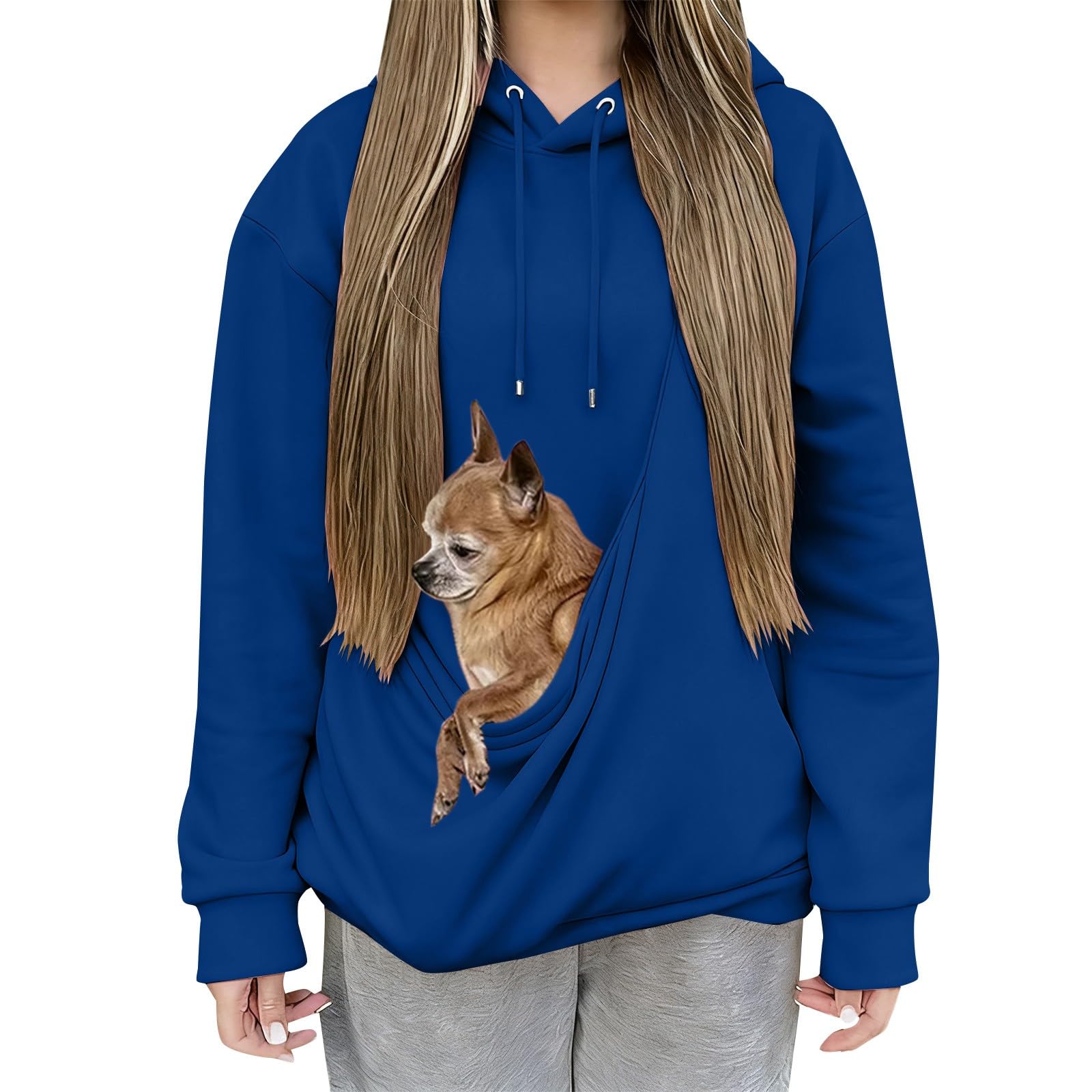 Damen Hoodie Mit Katzentasche - Kapuzenpullover Mit Haustiertasche