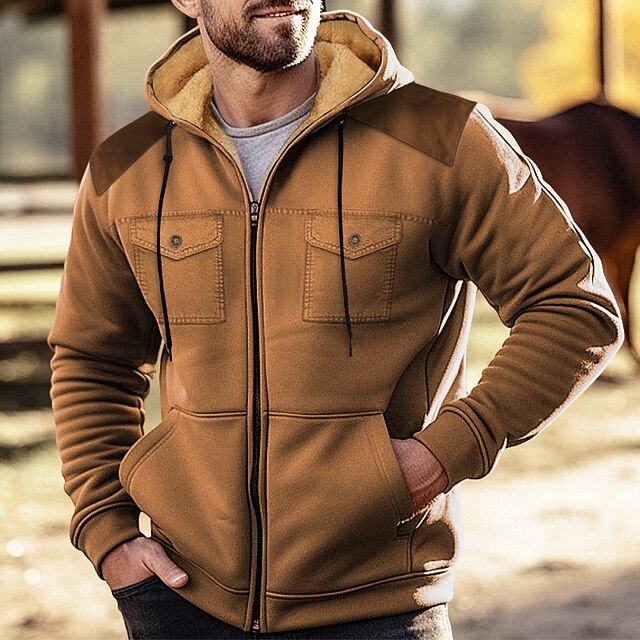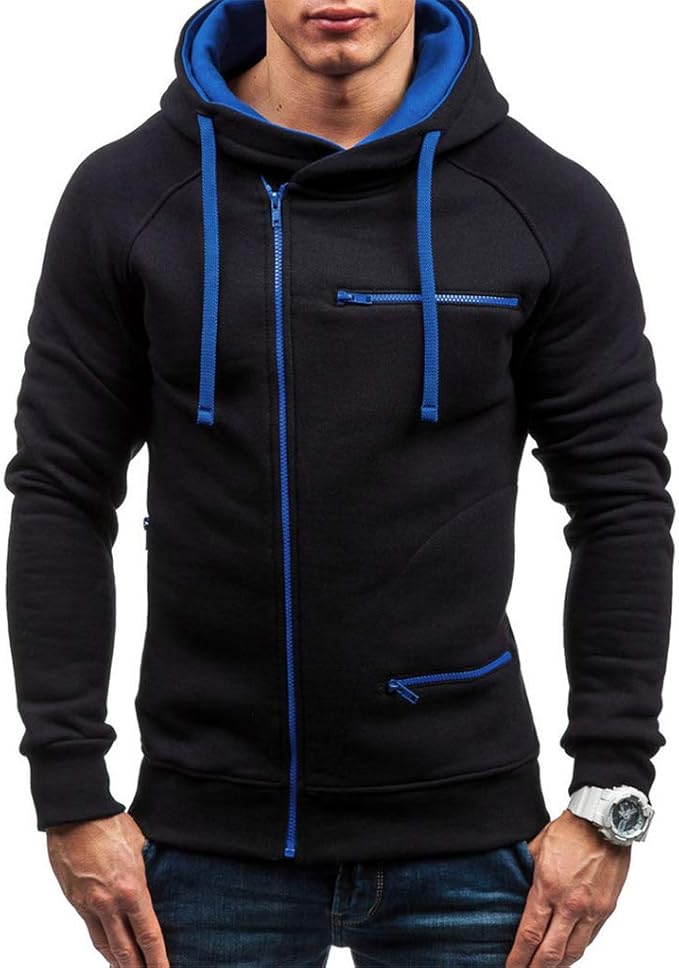 Herren Hoodie Mit Reißverschluss & Waffelmuster - Sweatshirt Mit Kapuze Baumwolle