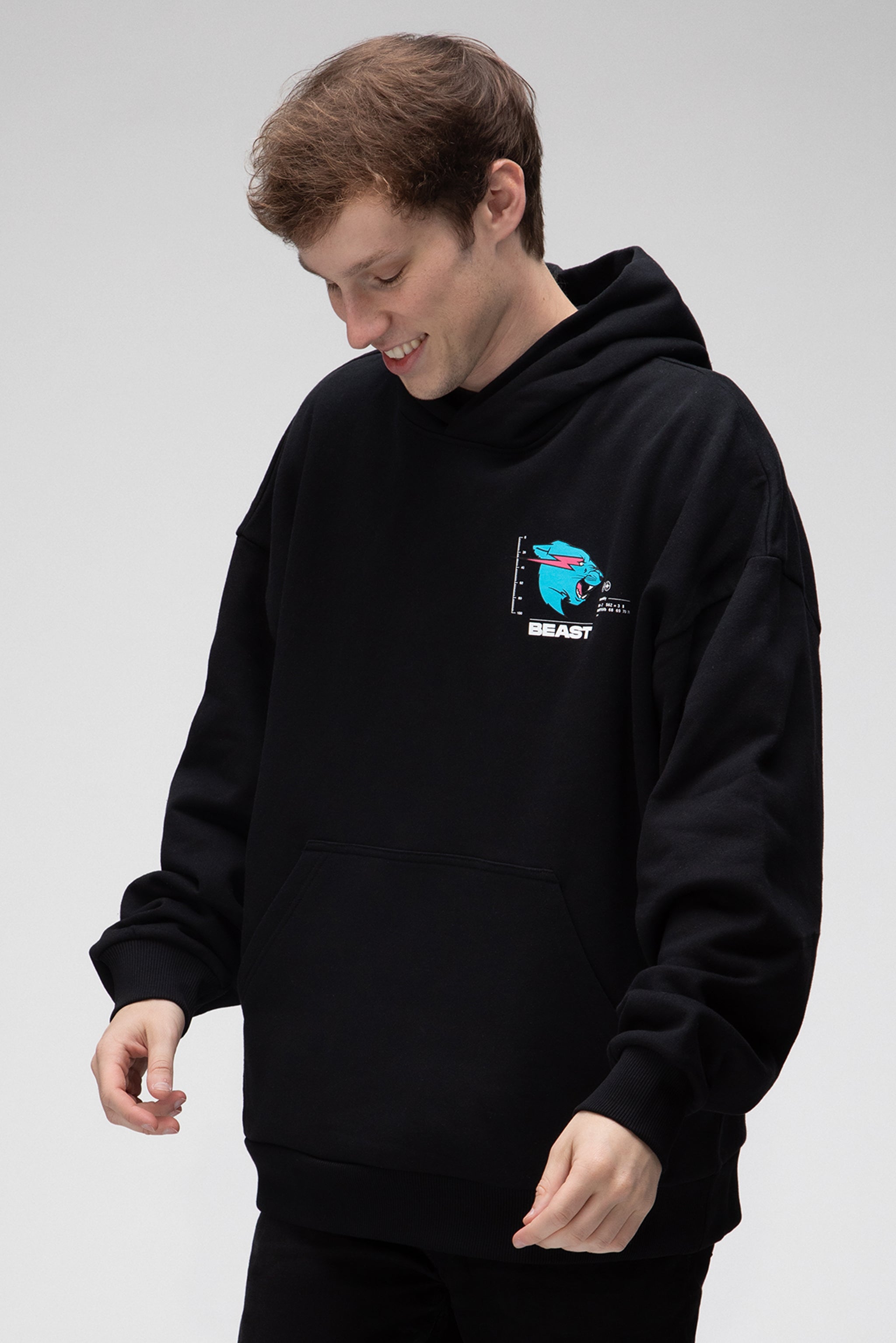 Hey MrBeast-Fans und Gamer! Dieser offizielle Beast Games Hoodie in Schwarz ist genau dein Ding. Mit dem ikonischen Logo vorne und dem coolen Panther-Emblem auf dem Rücken zeigst du, wo deine Leidenschaft liegt. Die kräftigen weißen und türkisfarbenen Prints heben sich super vom schwarzen Stoff ab. Aus weichem Baumwollmix gefertigt, kratzt er nicht und ist angenehm zu tragen. Die gemütliche Kapuze, die gerippten Bündchen und die praktische Kängurutasche machen ihn zum perfekten Begleiter für Gaming-Sessions, Schulalltag oder Freizeit. Ob du zockst, chillst oder unterwegs bist - dieser Hoodie sitzt immer comfortable. In verschiedenen Jugendgrößen erhältlich, passt er jedem jungen Gamer. Maschinenwaschbar ohne dass der Druck leidet - also super pflegeleicht. Zeig deine Liebe zu MrBeast und den Beast Games! Ein mega Geschenk für Geburtstage oder einfach so. Einfach anziehen und ab geht's ins Gaming-Abenteuer!