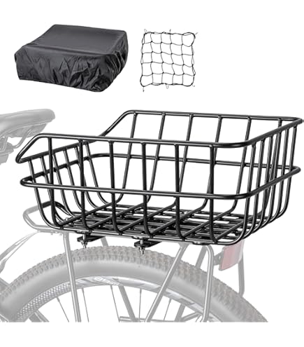 HopesEager Fahrradkorb Hinten Mit Regenschutz - 40x32x17cm Metallkorb 25kg Tragkraft Für E-Bikes
