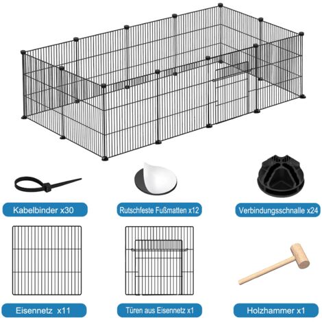 Das perfekte Zuhause für deine Kleintiere! Das Kerbl Hoppla Indoor Gehege mit den Maßen 144x72x72cm bietet reichlich Platz für Kaninchen, Hasen und andere Nager. Die extra hohe Bauweise verhindert ungewolltes Ausbrechen und der Nylonboden schützt deine Böden vor Kratzern und Schmutz. Super einfach montiert - werkzeuglos mit praktischen Kunststoffverbindern. Die verschließbare Tür ermöglicht freien Auslauf und dank des geringen Gitterabstands von nur 1,5 cm ist es auch für Jungtiere sicher. Aus pulverbeschichtetem Metall für Langlebigkeit. Einfach aufbauen, einrichten und deine Tiere genießen lassen!