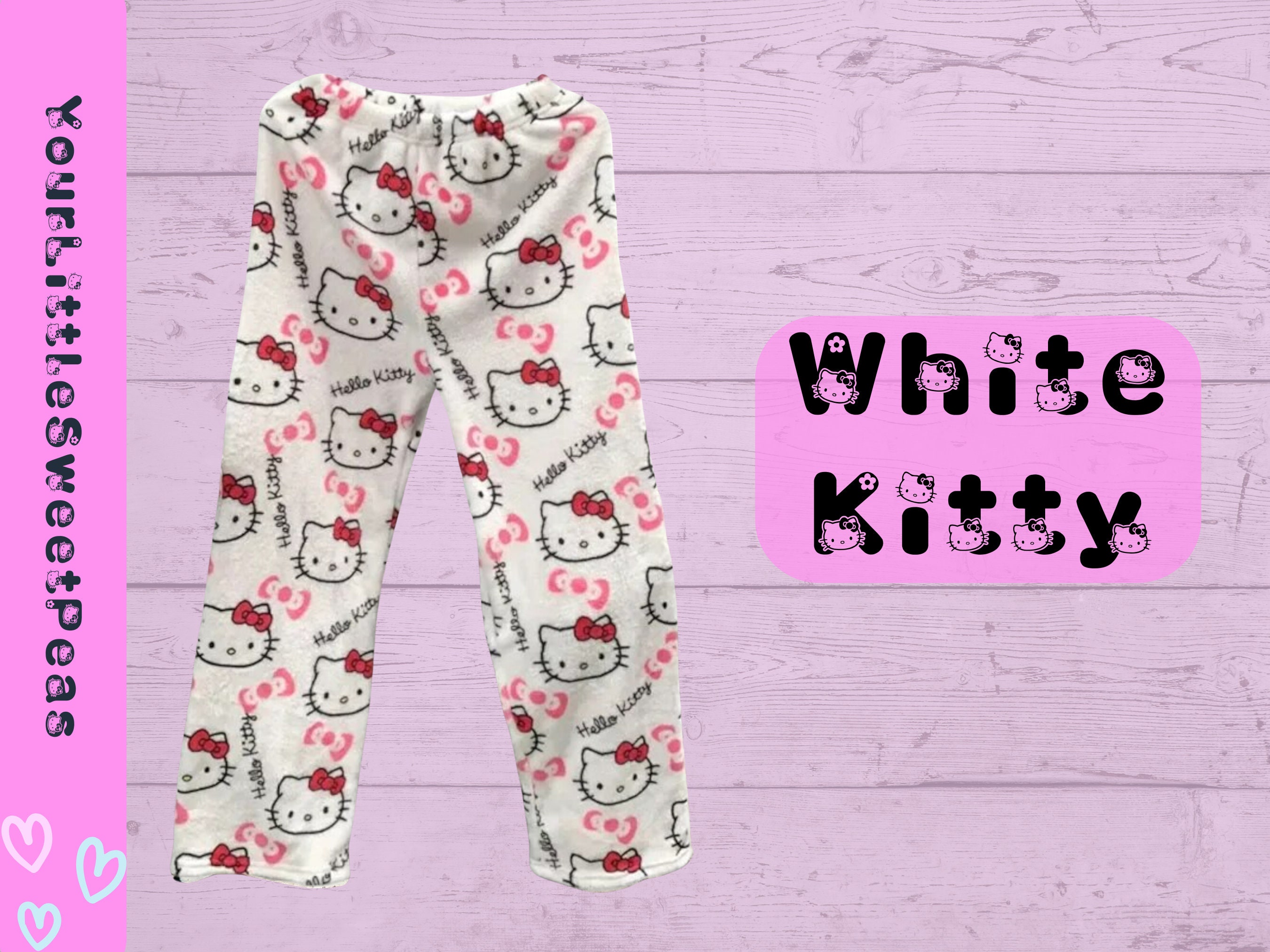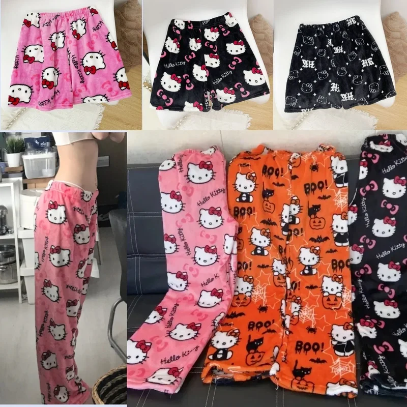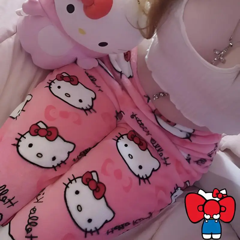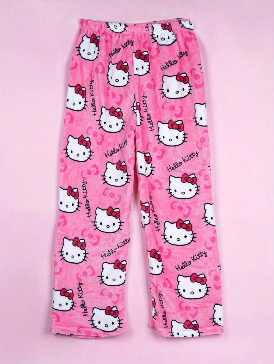 Kitty Pyjama Hose Damen - Kawaii Flanell Schlafhose Mit Katzenmotiv
