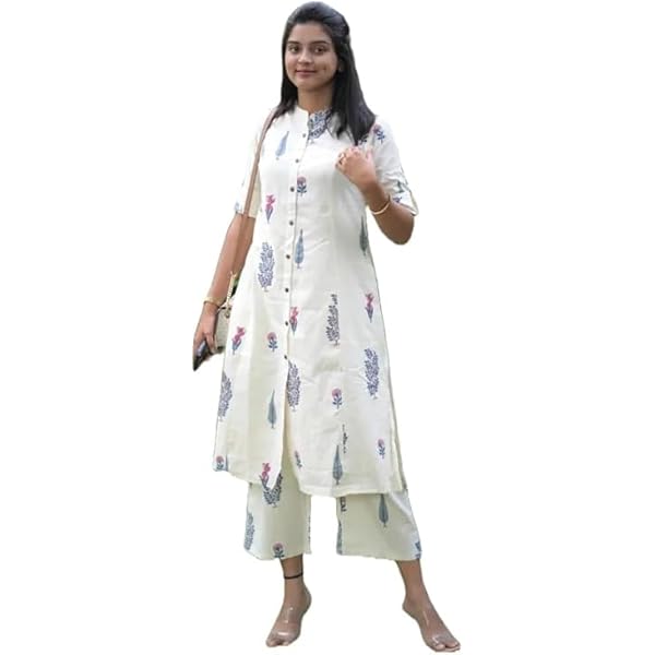 Indische Damen-Kurta Mit Hose - Handbedrucktes Baumwoll-Set Für Feste & Büro