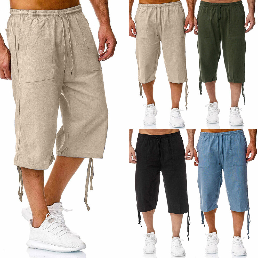 Japanische Taro Hose Herren 3/4 - Leinen Kurzhose Asiatischer Stil Sommer