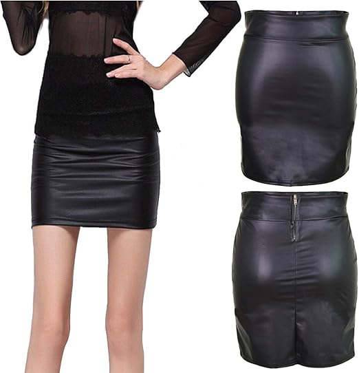 GORGLITTER Damen Rock Mit Hose - Sexy PU Lederrock In Curvy Größen