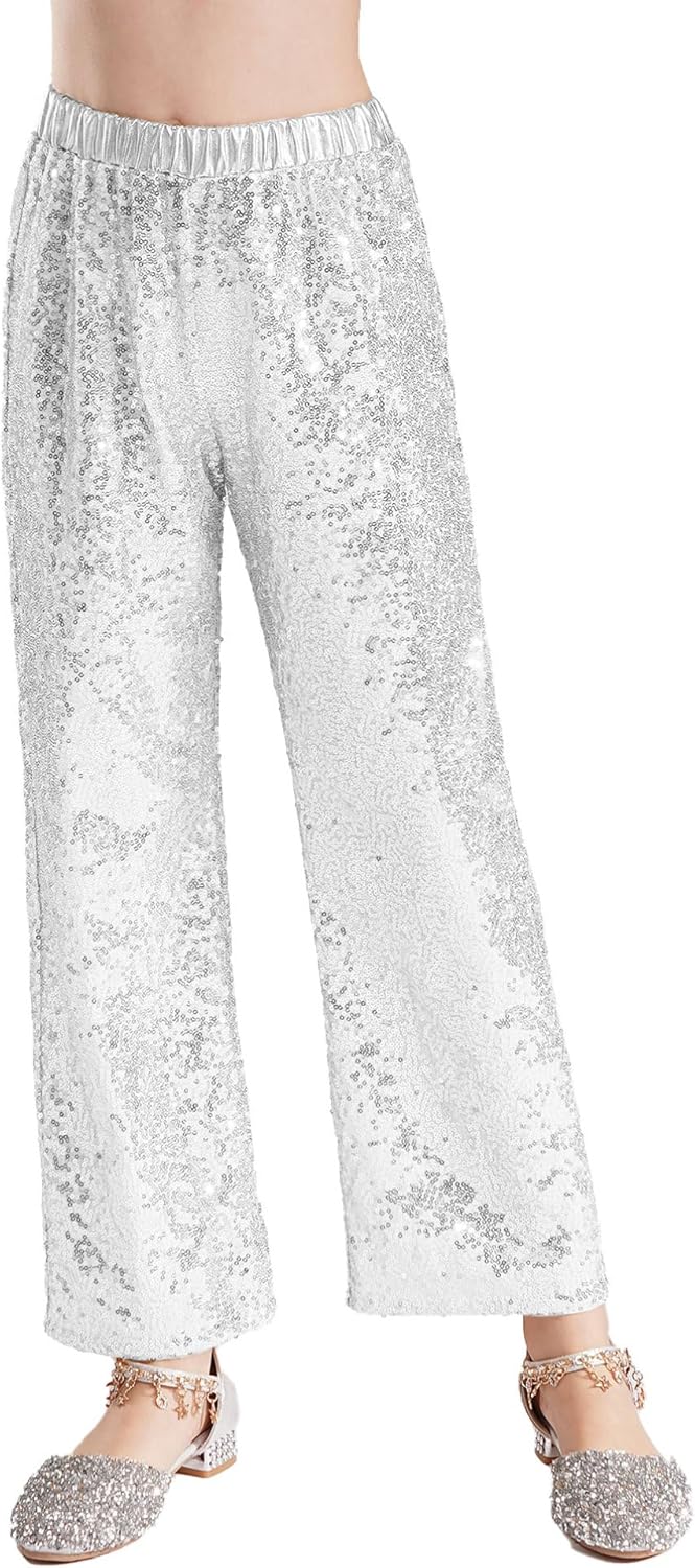 RUNQHUI Mädchen Pailletten Hose - Weite Beine Glitzer Tanzhose Für Kinder
