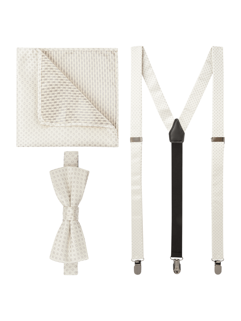 Suchst du nach dem perfekten Accessoire für den nächsten besonderen Anlass? Dieses Hosenträger & Fliege Set von Alizeal im hübschen Polka Dot Design macht dich zum Gentleman! Aus 100% Polyester gefertigt, sitzt alles perfekt und sieht einfach klasse aus. Die Hosenträger sind 3,5cm breit und bis 110cm verlängerbar - passen also für jede Figur. Die Clips halten bombenfest und verrutschen nicht. Die selbstzubindende Fliege ist ebenfalls im Punktemuster gehalten und lässt sich von 14,5\ bis 20\ anpassen. Perfekt für Hochzeiten, Bälle, Abschlussfeiern oder einfach für einen stylischen Abend. Das Set kommt komplett mit Hosenträgern und Fliege - mehr brauchst du nicht für den perfekten Auftritt. Einfach die gewünschte Farbe auswählen und du bist startklar! Ob als Gast oder als Bräutigam - mit diesem Set machst du definitiv eine gute Figur. Qualität, die man sieht und spürt - von der Verarbeitung bis zum Tragekomfort. Zeit, deinem Outfit den letzten Schliff zu verleihen!