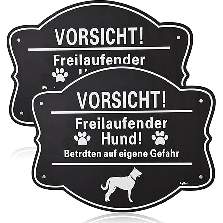 Sorge für klare Verhältnisse mit diesen 'Vorsicht Hund'-Schildern! Im Set bekommst du 2 robuste Aluminium-Schilder in 25x10cm. Perfekt für Grundstück, Garten oder Hof - damit jeder Bescheid weiß, dass ein Hund im Haus ist. Die Schilder sind witterungsbeständig, rostfrei und bleiben auch nach Jahren gut lesbar. Besonders praktisch: Sie haben sowohl selbstklebende Rückseite als auch vorgebohrte Löcher für Schrauben. So kannst du sie flexibel an Zäunen, Toren oder Wänden anbringen. Die Signalfarbe und große Schrift sind schon von Weitem gut erkennbar. Ideal zur Absicherung und zur Vorbeugung von unerwünschten Zwischenfällen. Mach dein Grundstück hundesicher und zeige Verantwortung - mit diesen qualitativ hochwertigen Warnschildern!