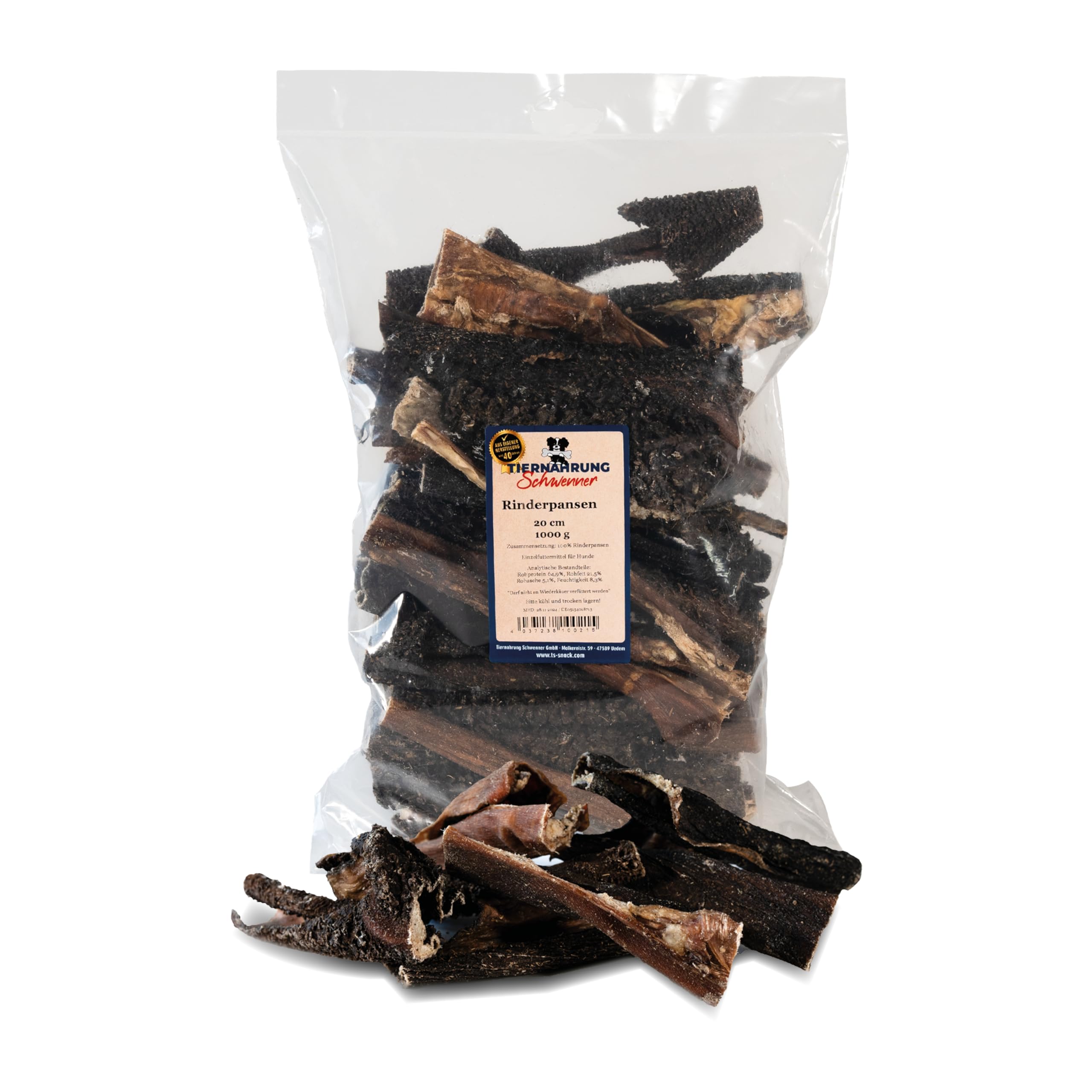 Dein Vierbeiner liebt natürliche Snacks? Dann wird er unseren Rinderpansen absolut lieben! Das sind 100% natürliche Kausnacks ohne irgendwelche künstlichen Zusätze, Konservierungsstoffe oder Aromen. Einfach nur reiner, hochwertiger Rinder-Pansen, der schonend luftgetrocknet wurde. So bleiben all die wichtigen Nährstoffe und der natürliche Geschmack super erhalten. Besonders praktisch: Die Snacks kommen in einer 1kg-Packung mit ca. 35-40 Stück - da hat dein Liebling eine Weile was davon! Die Rinderpansen-Snacks sind nicht nur super lecker, sondern tun auch was Gutes für die Zähne deines Hundes. Beim Kauen wird nämlich ganz natürlich Zahnstein und Plaque reduziert. Und das Beste: Sie sind hypoallergen und fettarm, also perfekt auch für sensible Hunde oder solche, die auf ihre Linie achten müssen. Egal ob Welpe oder erwachsener Hund - jeder kann diese Snacks genießen! Einfach 1-2 Mal am Tag geben und immer darauf achten, dass frisches Wasser bereitsteht. Die Snacks sind getreidefrei und leicht verdaulich, sodass sie auch Hunden mit empfindlichem Magen nicht schwerfallen. Sie befriedigen den natürlichen Kautrieb und sind die ideale Belohnung für zwischendurch. Dein Hund wird diese leckeren Happen lieben und du tust ihm damit etwas richtig Gutes. Perfekt als Training-Snack oder einfach so zum Verwöhnen! Die Stücke haben die ideale Größe zum Kauen und sind nicht zu hart, aber auch nicht zu weich. So macht snacken Spaß und ist gleichzeitig gesund!
