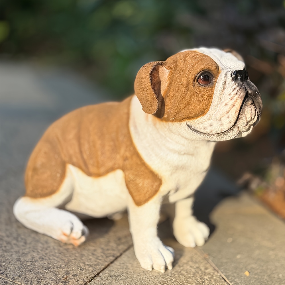 Bulldogge Gartenfigur Aus Harz - Wetterfeste Hunde Statue Für Draußen
