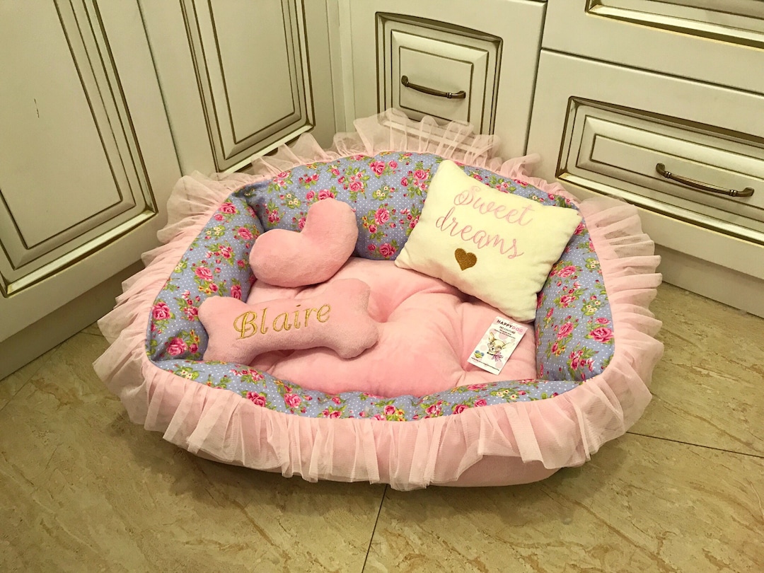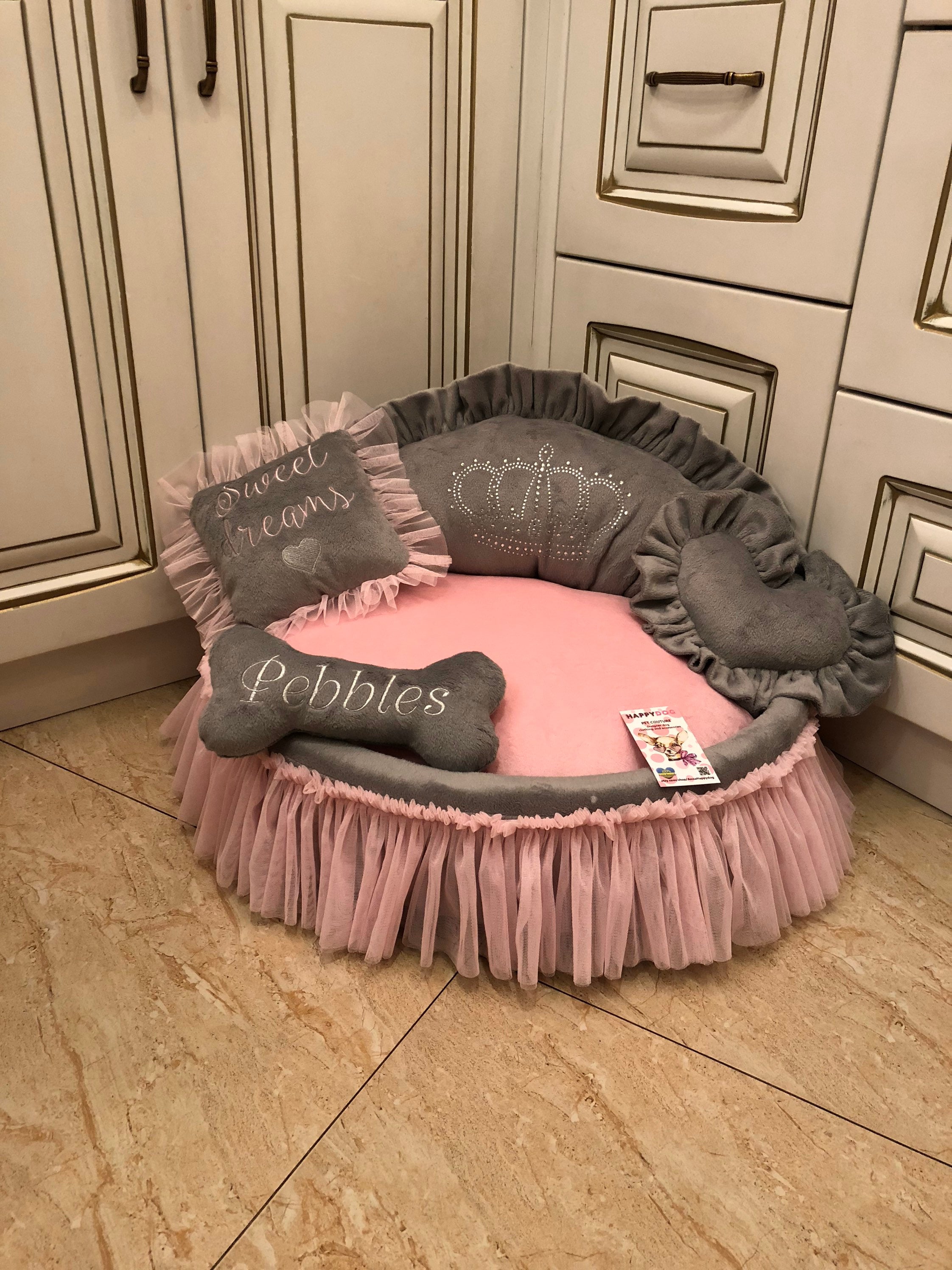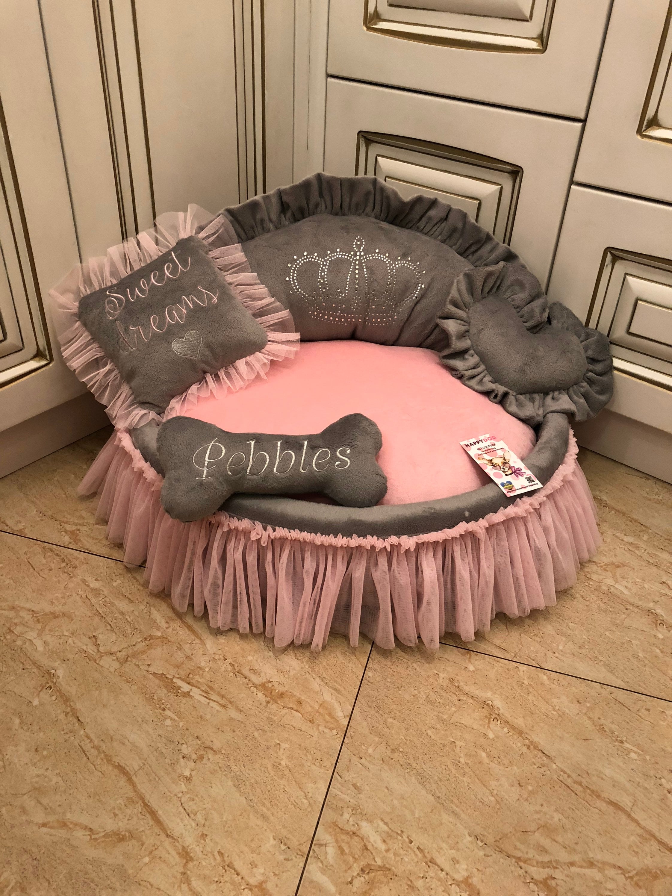 Rosa Prinzessin Hundebett Mit Spitze - Abnehmbares Kissen Für Katzen & Hunde