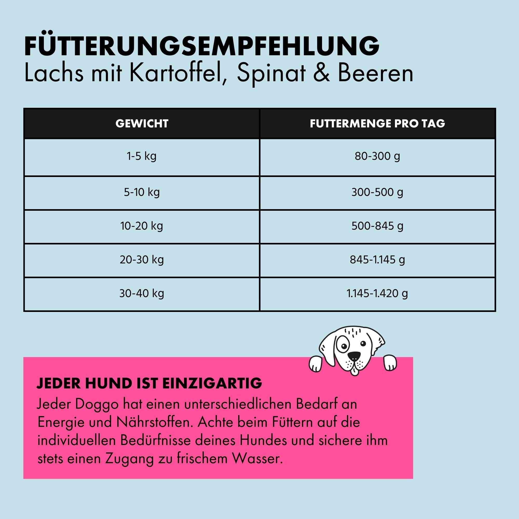 Hey Hundefreunde! Dieses STRAYZ Bio-Hundefutter ist wirklich was Besonderes. Mit 50% Bio-Lachs aus Norwegen, Kartoffeln, Spinat und einer Beeren-Mischung - alles in bester Bio-Qualität! Komplett ohne Getreide, Zucker, Bindemittel oder Lockstoffe. Hergestellt in Bayern mit frischen Zutaten von regionalen Bio-Höfen. Das Beste: Mit jedem Kauf spendest du automatisch Futter für Streuner in Not - aktuell unterstützen sie 11 Tierschutzvereine weltweit! Von den drei Gründerinnen aus Berlin mit viel Herz entwickelt. Perfekt für allergische Hunde oder einfach für alle, die ihrem Vierbeiner was Gutes tun wollen. Die Nährwerte sind optimal abgestimmt mit allen wichtigen Vitaminen und Mineralstoffen. Einfach artgerechtes Futter das schmeckt und gleichzeitig Gutes tut!
