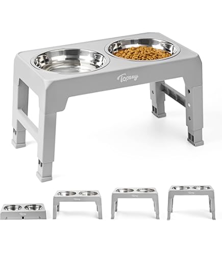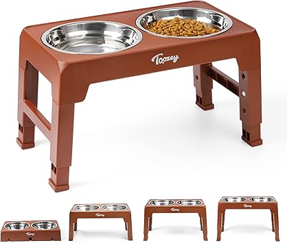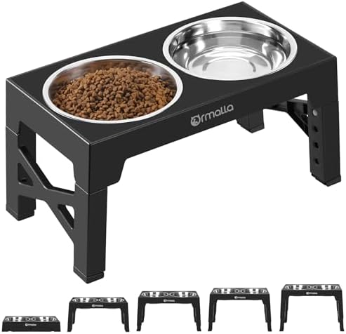 Gib deinem Hund das Füttern so bequem wie möglich! Dieser höhenverstellbare Napfstander hat 5 verschiedene Höhen von 7,9 bis 31cm - perfekt für kleine, mittlere und große Hunde. Einfach den Knopf drehen und die ideale Futterposition finden.\\n\\nDabei sind zwei Edelstahlschüsseln mit je 1200ml Fassungsvermögen und ein spezieller Langsamfutternapf mit 800ml. Der Slow-Feeder Napf hilft Schlingern, langsamer zu fressen und beugt Verdauungsproblemen vor. Die Edelstahlschüsseln sind hygienisch und leicht zu reinigen.\\n\\nDein Hund muss sich nicht mehr bücken, was Rücken und Gelenke schont. Der Stander ist aus stabilem Kunststoff und lässt sich platzsparend zusammenklappen - ideal für Reisen oder kleine Wohnungen. Mach die Fütterungszeit zur Wohlfühlzeit für deinen Vierbeiner!