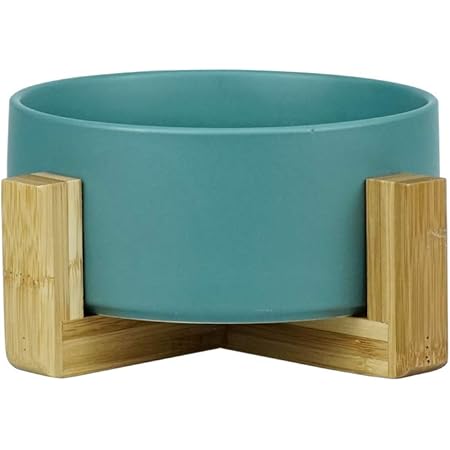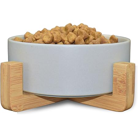 HCHLQLZ Keramik Hundenapf Mit Holzständer - Gelb Für Hunde & Katzen