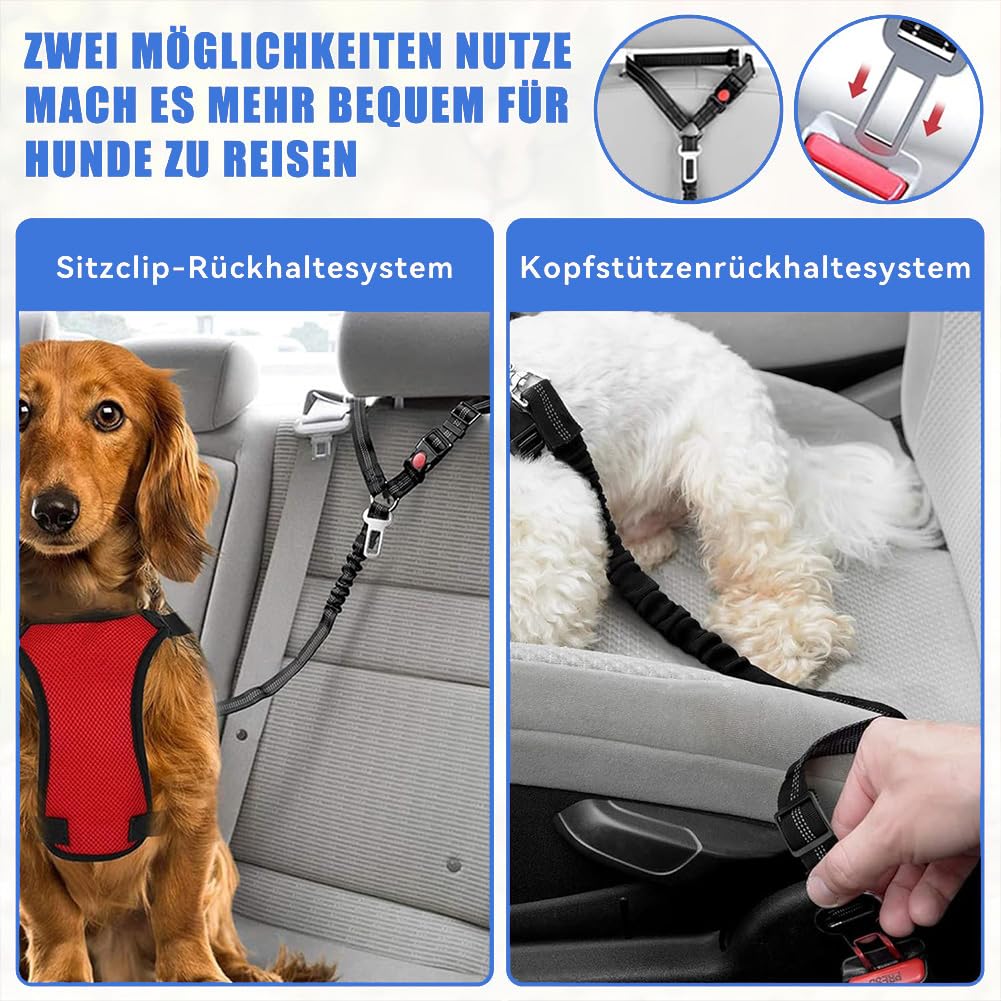 2 Stück Hundesicherheitsgurt Fürs Auto - Verstellbar 50-75cm Mit Karabiner & Ruckdämpfung