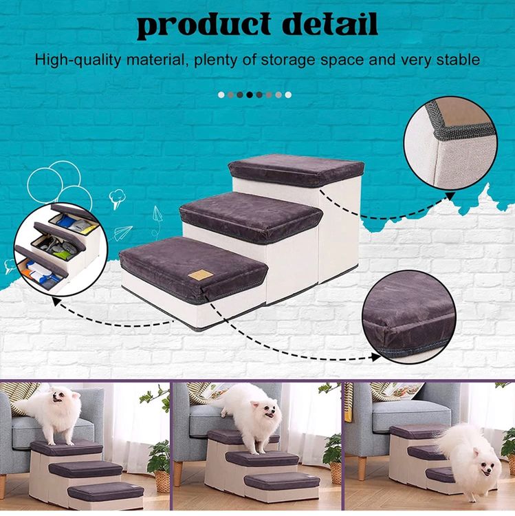 Hundetreppe 3-stufig - Rutschfeste Treppe Für Kleine Hunde & Katzen Bis 39cm