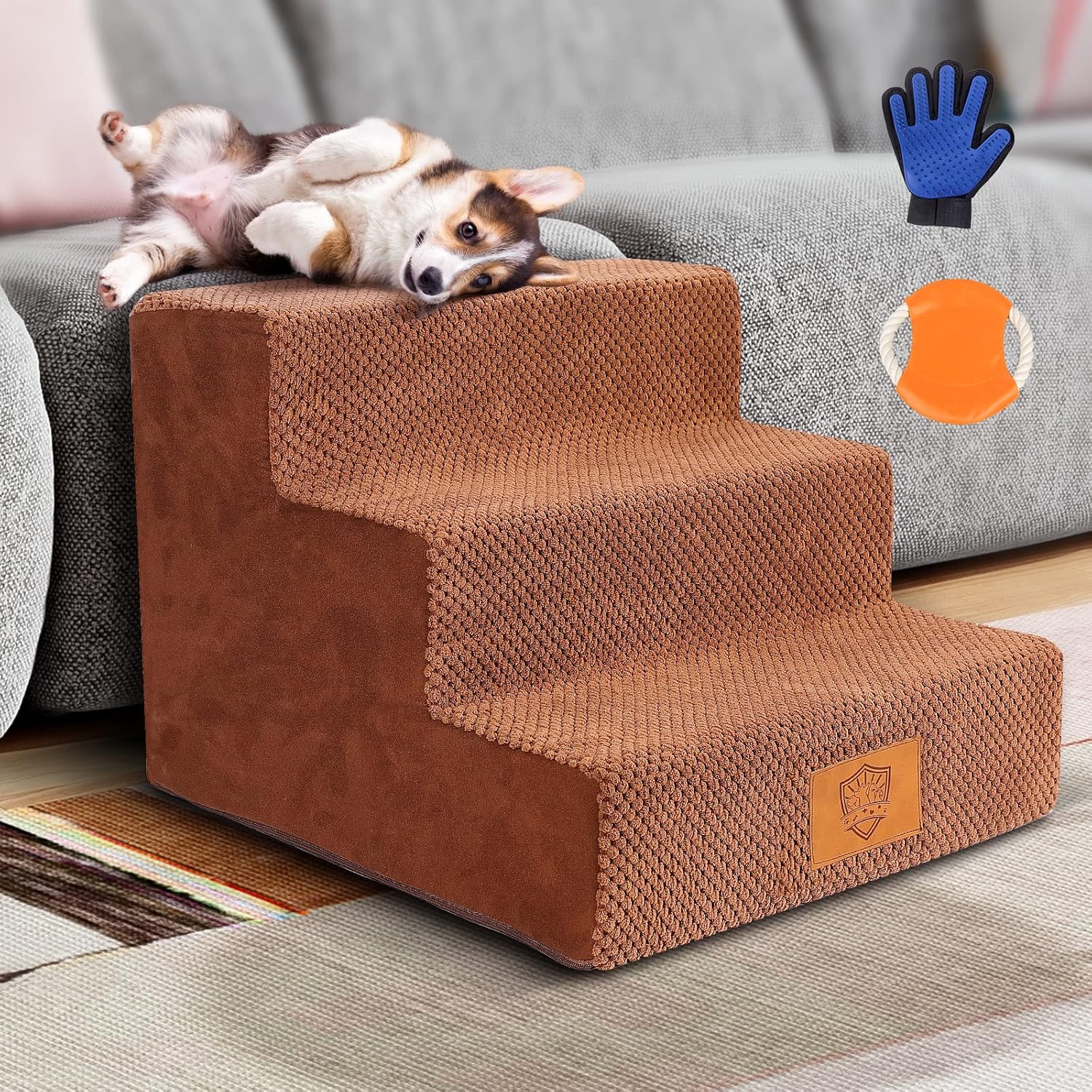 3 Stufen Hundetreppe 40cm | Rutschfester Hochdichter Schwamm | Waschbarer Bezug Für Bett & Sofa