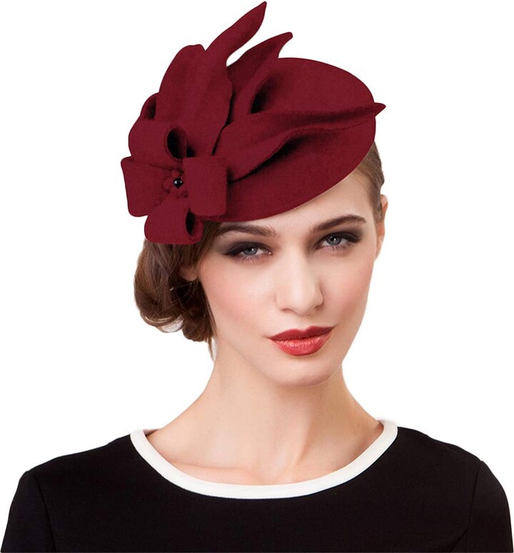 Fascinator Damen Hut - Wollfilz Fedora Mit Blumenmuster Für Hochzeit Und Party