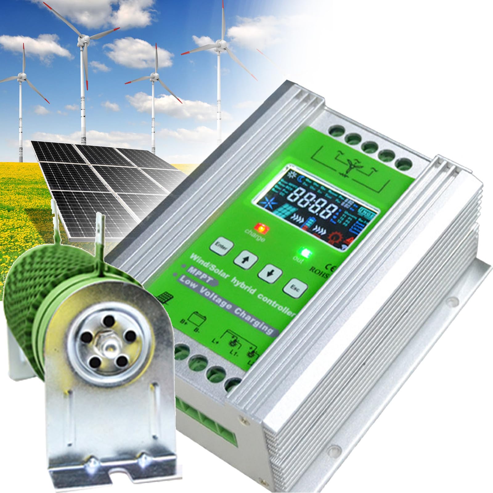 Planst du deine eigene Energieversorgung? 🔋 Dieser Wind-Solar Hybrid Laderegler ist dein Ticket zur Unabhängigkeit!\\n\\nDas Ding kann was: Er kombiniert Windkraft und Solarenergie intelligent in einem Gerät. Automatisch erkennt er 12V, 24V oder 48V Batterien - du musst nix einstellen! Die MPPT Boost-Technologie holt selbst bei wenig Wind noch Maximum an Leistung raus.\\n\\nTechnische Specs im Überblick:\\n• Systemspannung: 12V/24V/48V auto-detect\\n• Leistung: Bis zu 3000W\\n• Display: Großes LCD mit allen Infos\\n• Schutz: Verpolung, Überladung, Blitzschutz - alles dabei!\\n• Temperaturbereich: -20°C bis +55°C\\n\\nBesonders praktisch: Der stufenlose PWM-Entladung und externe Entladewiderstand. Du kannst verschiedene Modi einstellen - reine Lichtsteuerung, Dauerbetrieb oder Zeitsteuerung.\\n\\nPerfekt für:\\n• Ferienhäuser und Gartenlauben\\n• Boote und Wohnmobile\\n• Überwachungsanlagen\\n• Straßenbeleuchtung\\n\\nAchtung bei der Installation: Bitte mit trockenen Händen arbeiten und auf die richtige Polung achten! Bei Fragen - wir helfen gerne weiter. So macht autarke Energie Spaß! 🌞💨