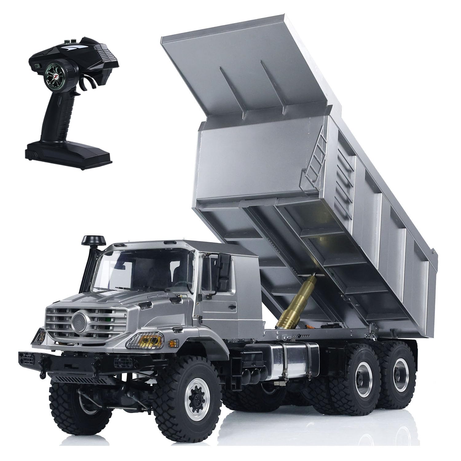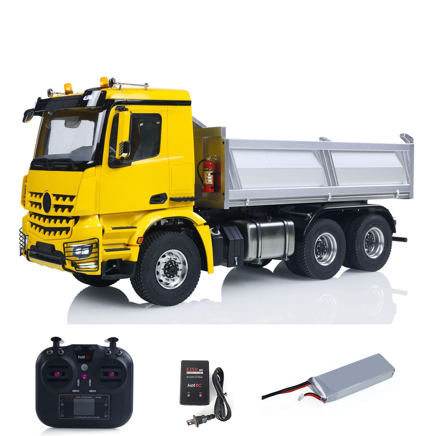 Abgefahrener RC-Kipper der alles kann! Im Maßstab 1:14 mit echtem 6x6 Metall-Chassis und hydraulischem Kippsystem das bis zu 20kg trägt. Komplett fertig montiert und lackiert - einfach Akku laden und losfahren! Mit realistischen Soundeffekten, LED-Beleuchtung und zwei Ganggetriebe für verschiedene Geschwindigkeiten. Die Metallachse und das präzise Differenzial sorgen für authentisches Fahrverhalten. Inklusive HotRC 10-Kanal-Fernsteuerung für volle Kontrolle. Der Muldenkipper hat warnleuchten und viele Metallteile für extra Robustheit. Perfekt für Baustellen-Simulationen im Garten oder Wohnzimmer. Einfach der Hit für große und kleine Truck-Fans! Damit wird jede Spielsession zum echten Abenteuer.