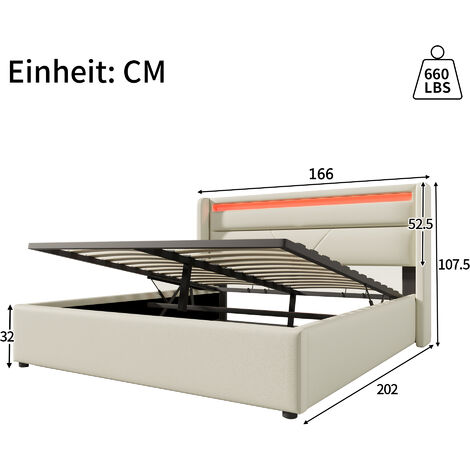 Polsterbett 160x200 Mit LED Beleuchtung - Hydraulisches Bett Mit Stauraum In Beige Samt