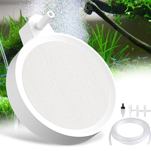 Dieser hygger Nano Luftstein macht dein Aquarium zum echten Hingucker! Mit 2,6 Zoll Durchmesser perfekt für kleine bis mittlere Aquarien von 5-30 Gallonen. Der Clou: Er erzeugt superfeine Nanobläschen wie ein sanfter Nebel - total beruhigend anzusehen und leise! Aus gesintertem Nanomaterial mit Edelstahl-Sockel - rostfrei, langlebig und sicher für deine Fische. Die dichten Blasenporen verstopfen nicht so schnell. Im Komplett-Set: Luftstein, Schlauch, Steuerventil, Rückschlagventil, Saugnapf, T-Verbinder und Anleitung. Wichtig: Vor der ersten Nutzung 1 Stunde in Wasser einweichen für optimale Leistung! Luftpumpe nicht im Lieferumfang - benötigst du separat. Empfohlen für Pumpen ab 3W Leistung. Perfekt für Aquarien, hydroponische Systeme oder kleine Teiche. Einfach anschließen, ins Wasser setzen und deine Fische werden es dir danken! Mehr Sauerstoff, schönere Bläschen und happy Fische - was will man mehr?