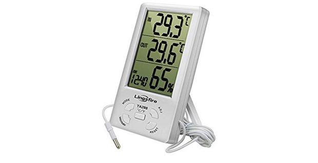 Hey, dieses digitale Thermo-Hygrometer ist super praktisch fürs Zuhause! Es misst gleichzeitig die Temperatur und Luftfeuchtigkeit innen sowie die Außentemperatur – alles auf einem großen LCD-Bildschirm. Mit nem 1,5 m Sensorkabel kannst du den Sensor nach draußen legen. Leider misst es keine Außenfeuchtigkeit, aber für innen ist es top. Zeigt auch Maximal- und Minimalwerte an, und du kannst zwischen °C und °F wechseln. Messbereich innen: -10°C bis 50°C, außen: -50°C bis 70°C, Feuchtigkeit: 20-99 % RH. Perfekt für Wohnung, Büro oder Auto. Einfach mit 1x AAA-Batterie betreiben (nicht inklusive). Mit Aufhängeloch oder zum Hinstellen. So behältst du immer den Überblick übers Raumklima – einfach und zuverlässig!