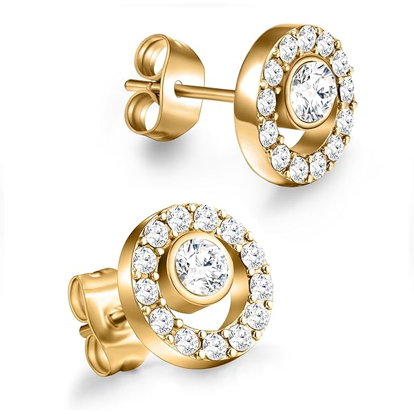 Ohrstecker Gold Mit Zirkonia - Hypoallergen Vergoldet, Trendige F Ohrringe