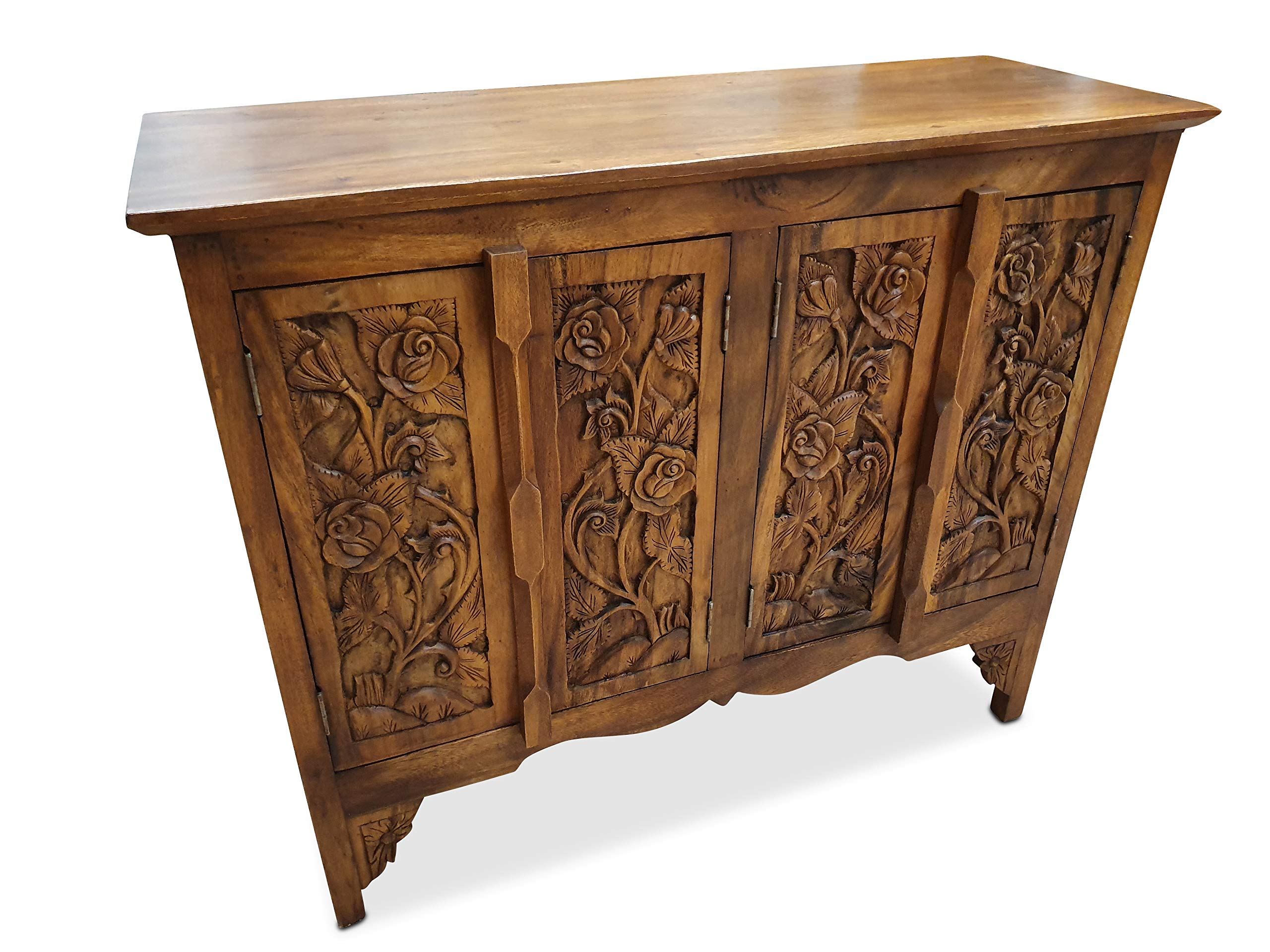 Massivholz Sideboard Chang I Akazie 100cm - Handgeschnitzt Mit Elefanten