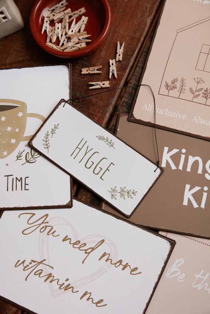 Oh, wie gemütlich! Dieses Metallschild mit der Aufschrift 'Hygge Christmas' bringt sofort weihnachtliche Stimmung in dein Zuhause. Perfect für die Adventszeit, um deine Wohnung festlich zu dekorieren. Mit 20x14cm ist es genau die richtige Größe für die Wand, die Kommode oder den Kaminsims. Das Design ist total zeitlos und passt zu jedem Einrichtungsstil. Einfach aufhängen und schon fühlst du dich wie in einer richtigen Weihnachtswelt. Super als Geschenk für Weihnachtsfans oder einfach für dich selbst, um die schönste Zeit des Jahres gebührend zu feiern. Hygge steht ja für Gemütlichkeit - und die bringt dieses Schild definitiv zu dir nach Hause!